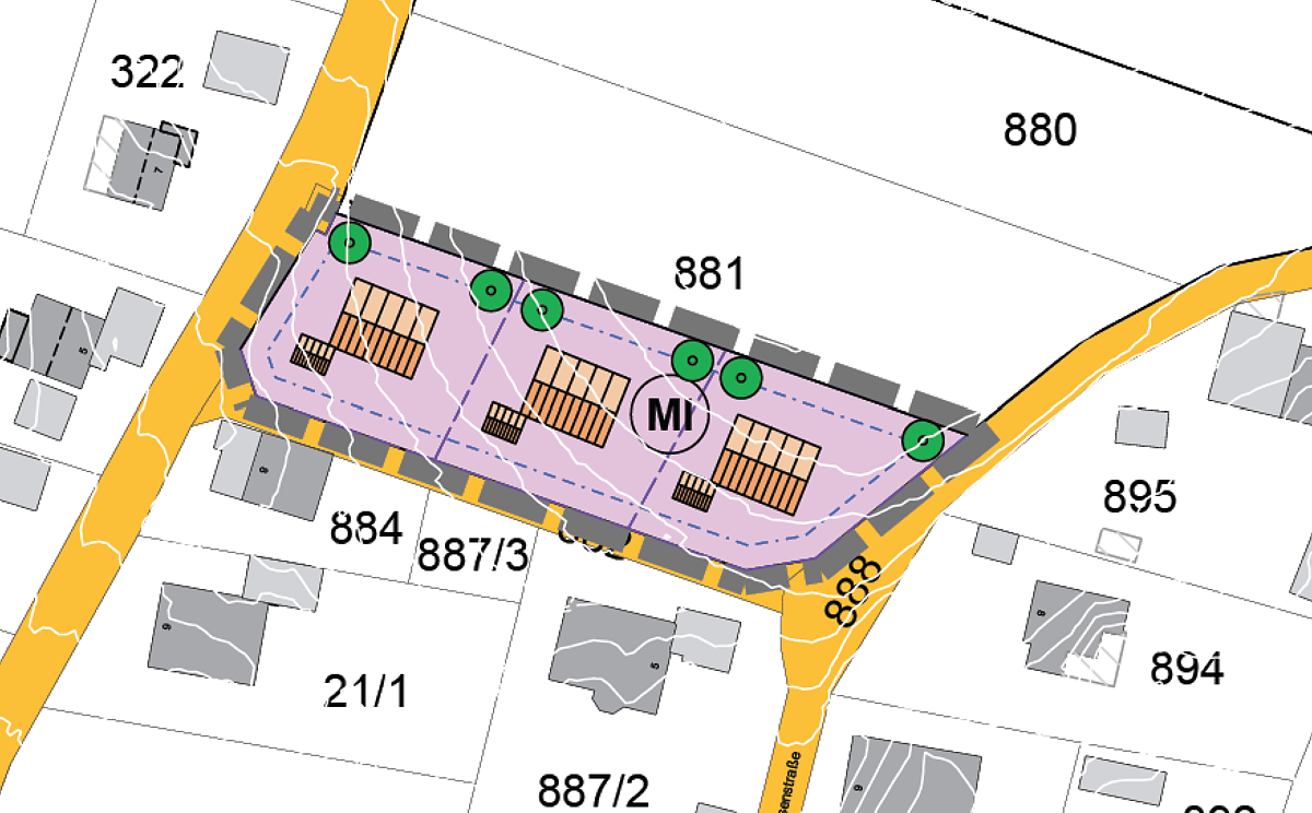 Die Fläche wird als Mischgebiet (MI) nach § 6 BauNVO ausgewiesen.