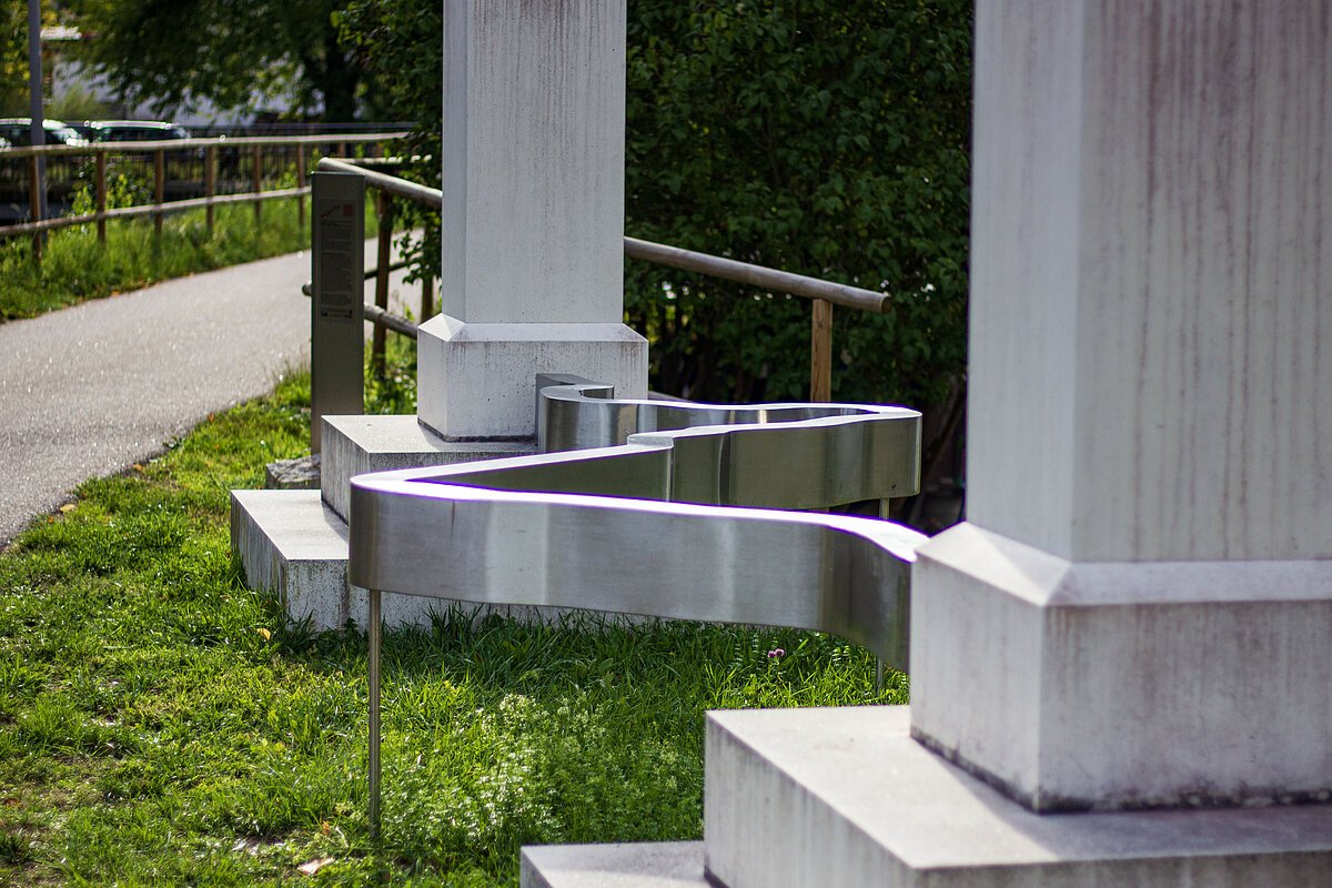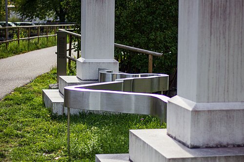 Zwei aus weißem Beton gefertigte Nachbildungen der von König Maximilian II. im Jahr 1861 errichteten Gedenksteine bilden, zusammen mit einem nach dem Verlauf des Obergermanisch-Raetischen Limes geformten Edelstahlband, das Kunstobjekt "Limes on Line". Besucher sind eingeladen, "on Line" zu gehen, diese Grenze zu betreten und zu überschreiten, im realen wie im übertragenen Sinn. So stellt das Kunstwerk einen Bezug zum UNESCO-Weltkulturerbe Obergermanisch-Raetischer Limes, her, der wenige hundert Meter entfernt südlich auf einer Anhöhe verläuft.